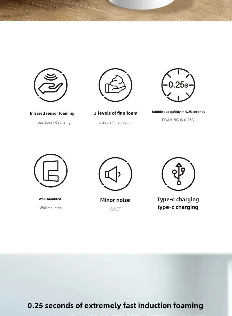 Household energy sensing multi gear contactless wall mounted vertical hand sanitizer rechargeable soap dispenser foam machine